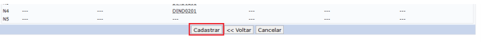 Para finalizar a operação, o usuário deverá clicar na opção “Cadastrar” localizada no final da tela:
