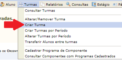 Após selecionar o curso em que irá criar a turma, acesse Turmas » Criar Turma.