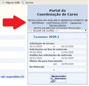 - Verifique se o curso em que está logado é aquele que pretende criar a turma. Caso não seja, clique em MUDAR DE CURSO, e selecione o curso desejado.
