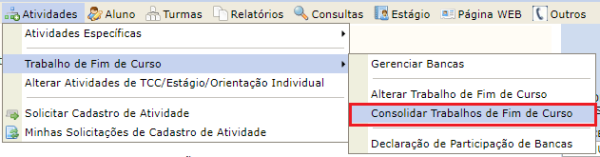 - Para a consolidar o Trabalho de Conclusão de Curso, acesse o SIGAA UEPA » Módulos » Portal Coord. Graduação » Selecione o Curso Desejado » Atividades » Trabalho de Conclusão de Curso » Consolidar o Trabalho de Conclusão de Curso.