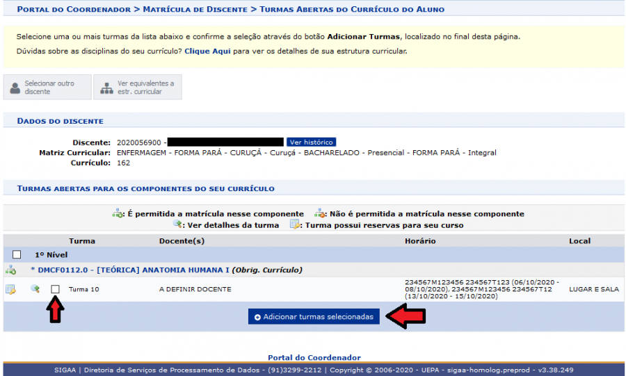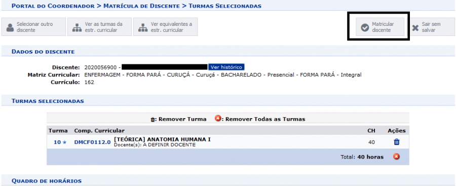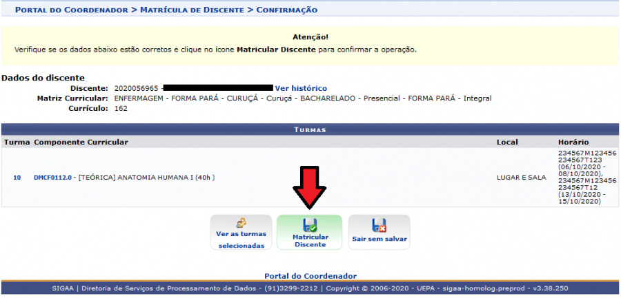- Prosseguir com a matrícula clicando em: “Matricular Discente”.
