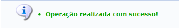 - O sistema retornará uma mensagem, no topo da tela, informando que a operação foi realizada com sucesso: