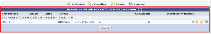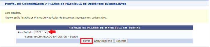 - O sistema retornará o(s) plano(s) de matrícula criado para o ano-período informado: