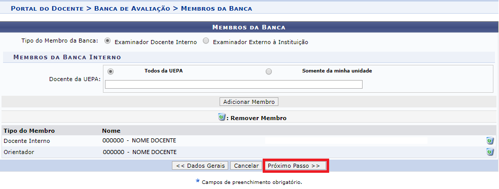 Caso tenha terminado de adicionar membros à banca de defesa, clique em Próximo Passo».