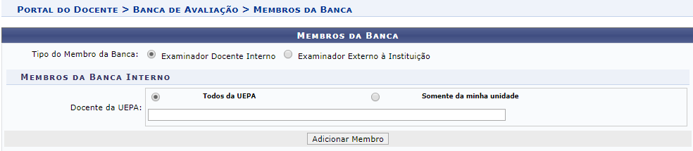 Após inserir as informações clique em Próximo Passo ». Uma tela para adicionar os membros que participarão da banca será exibida.