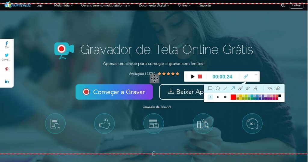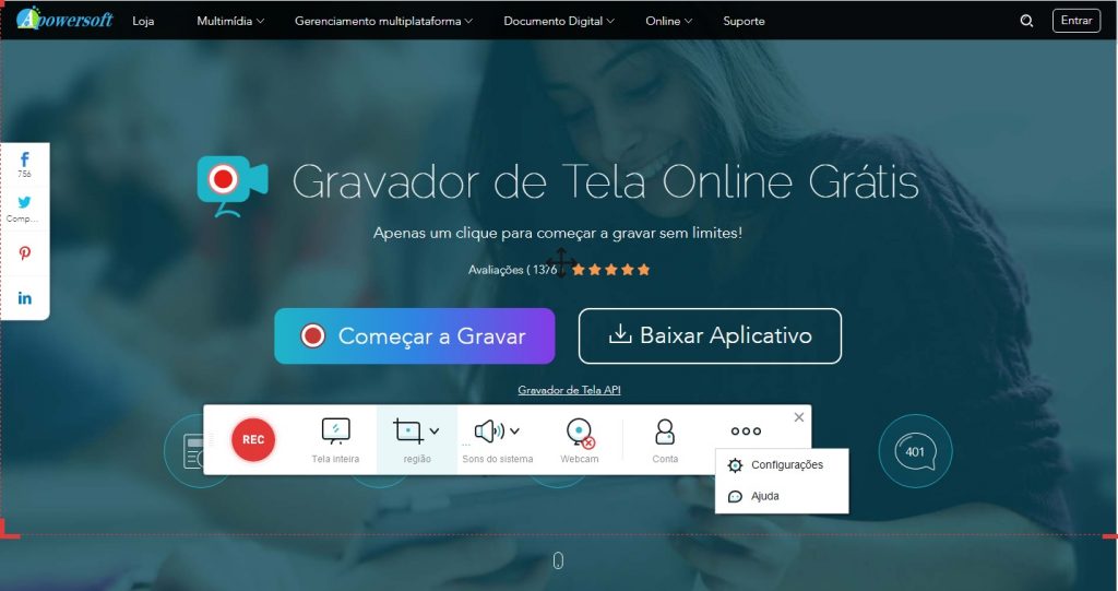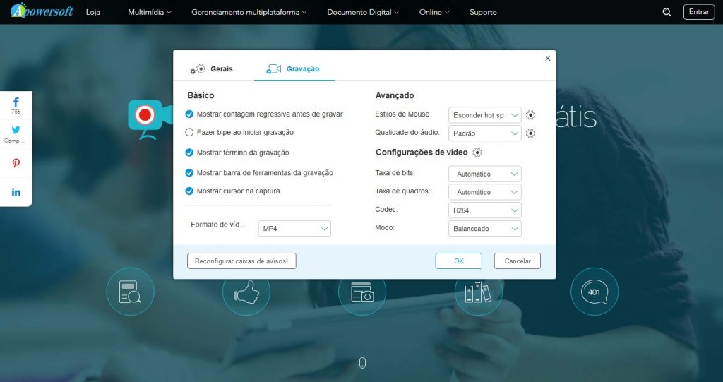 - Passo 11: Por fim, após editar as configurações, as mesmas ficarão gravadas, o que significa que as próximas gravações iniciarão com as configurações que foram definidas pelo usuário. É necessário sempre acessar o site https://www.apowersoft.com.br/gravador-de-tela-gratis para iniciar a ferramenta de gravação.