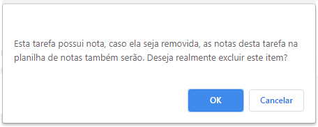 - Para remover uma tarefa criada, retorne à tela inicial de Tarefas e clique em . O sistema exibira uma tela de confirmação: