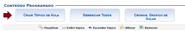 - Para criar um tópico de aula, deve-se Clicar no botão Criar Tópico de Aula.