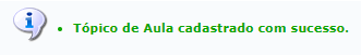 - Após o cadastramento do tópico, o sistema emitirá uma mensagem de confirmação.