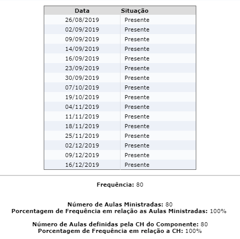 - Tiver presença em um número de aulas igual ou superior a 74.0% da carga horária do componente curricular;